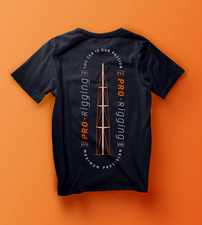 Squad and merchandising t-shirt collection for a local rigging workshop in Palma.